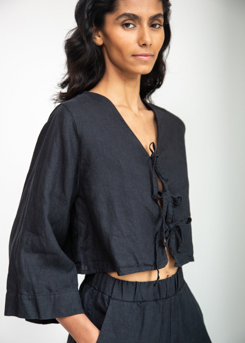 Kaz-May Linen Top in Black