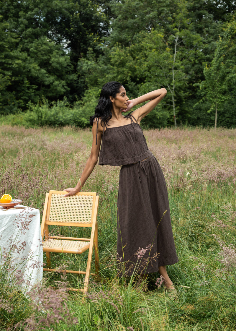 Macy Organic Cotton Skirt in Cacao