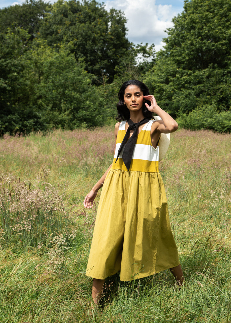 Rory-Sue Organic Cotton Jumpsuit in Olive and White Bold Stripe