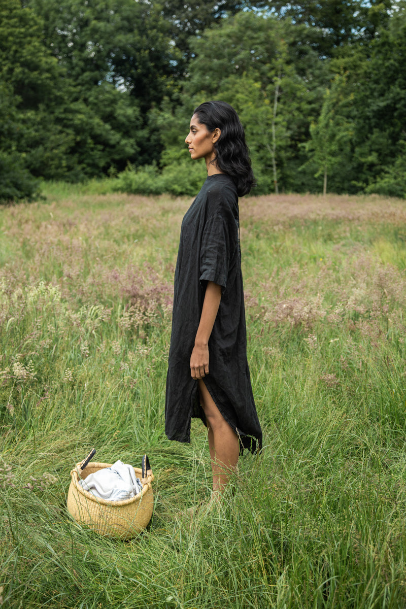 Featuring a side split and 3/4 length sleeves, this style is crafted from a light-weight luxurious linen for a soft drape and floaty feel.