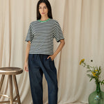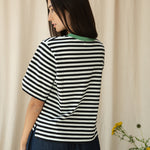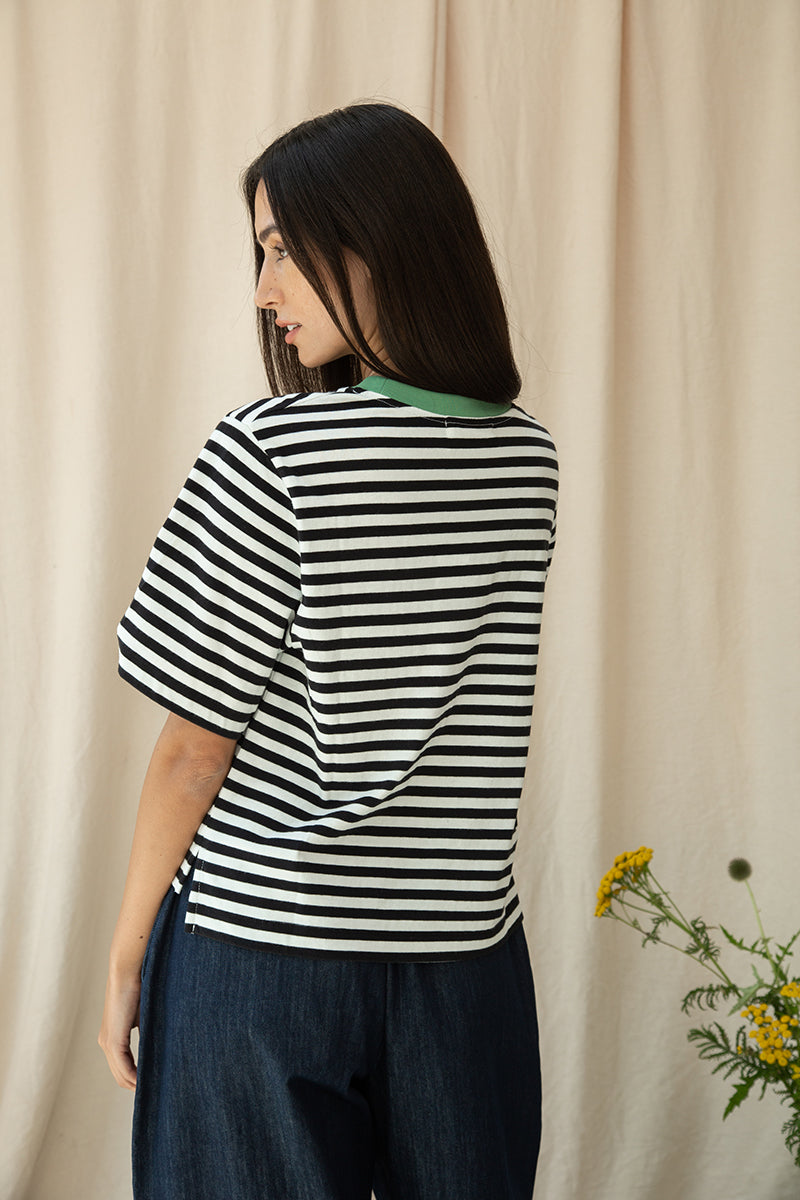 Bay-Sue Organic Cotton Jersey Stripe Top in Black & White Stripe