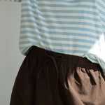 The Cedar trousers are a barrel leg style with a comfortable drawstring elasticated waistband and side pockets. Crafted from crisp poplin which has been brushed inside & out for a clean yet soft finish.