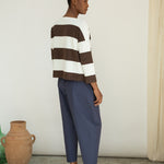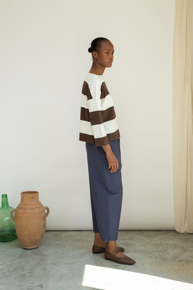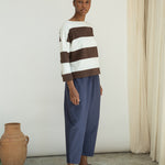 Leia-Sue Organic Cotton Jersey Stripe Top in Cacao & White Wide Stripe