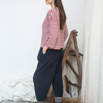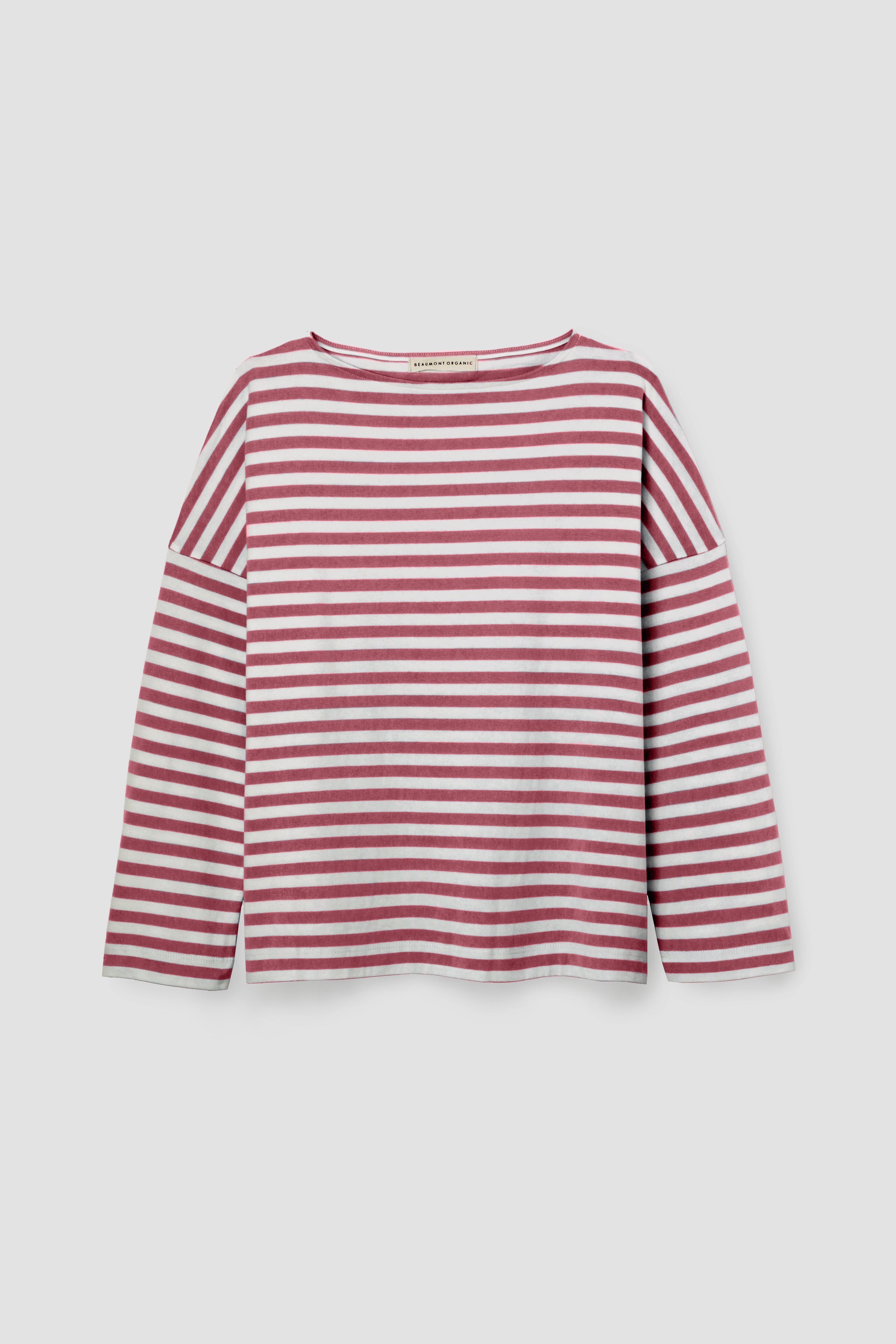 Leia-Sue Organic Cotton Stripe Jersey Top in Burgundy & Off White Stripe