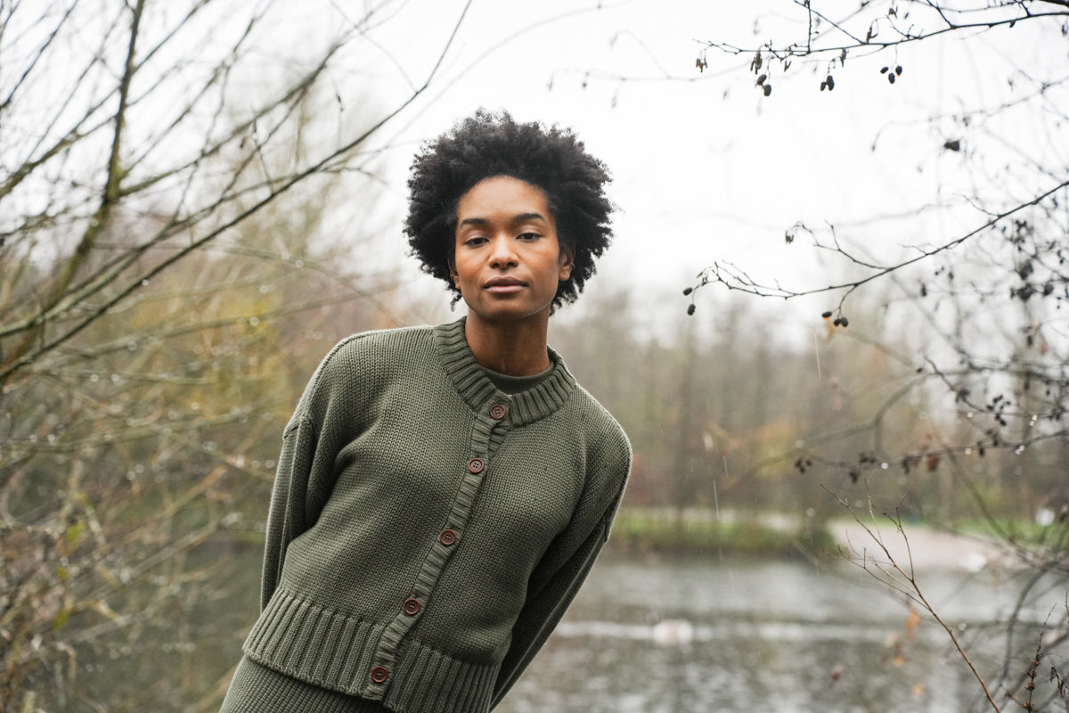 Sugi Organic Cotton Knitted Cardigan in Soft Khaki