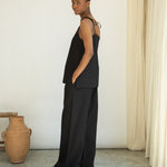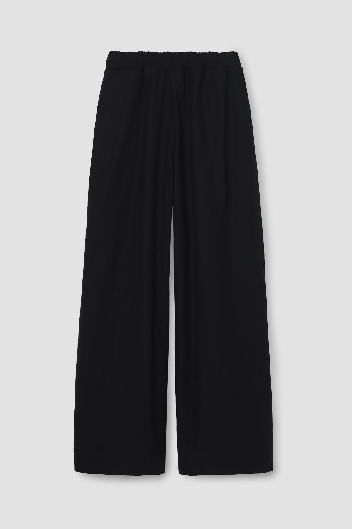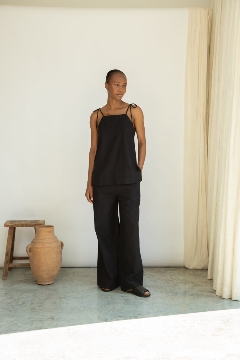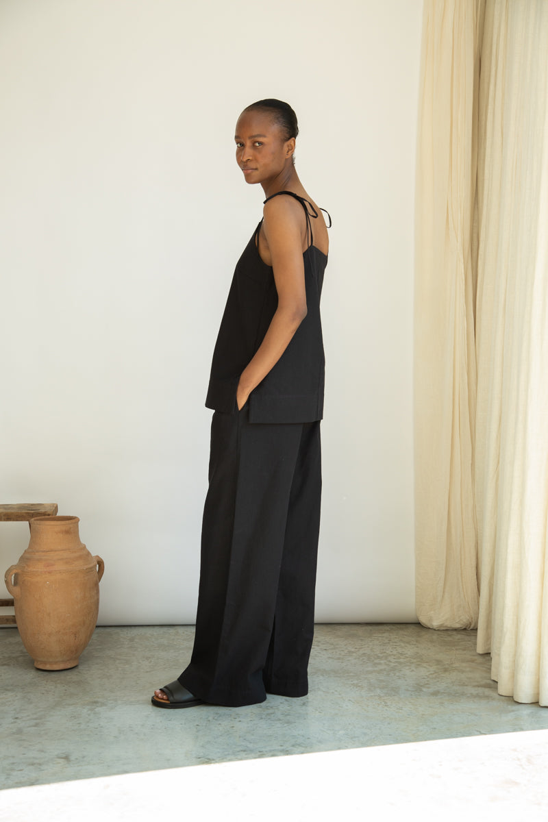 The Zoya-May trousers are a full length wide legged style, with side pockets and a comfortable elasticated waistband.