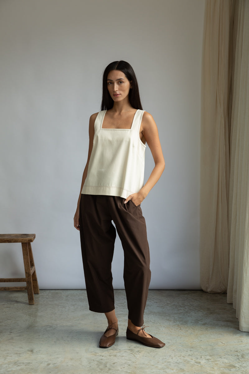 Styled here with our Cedar Organic Cotton Poplin Trouser.