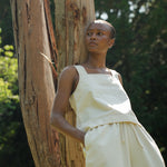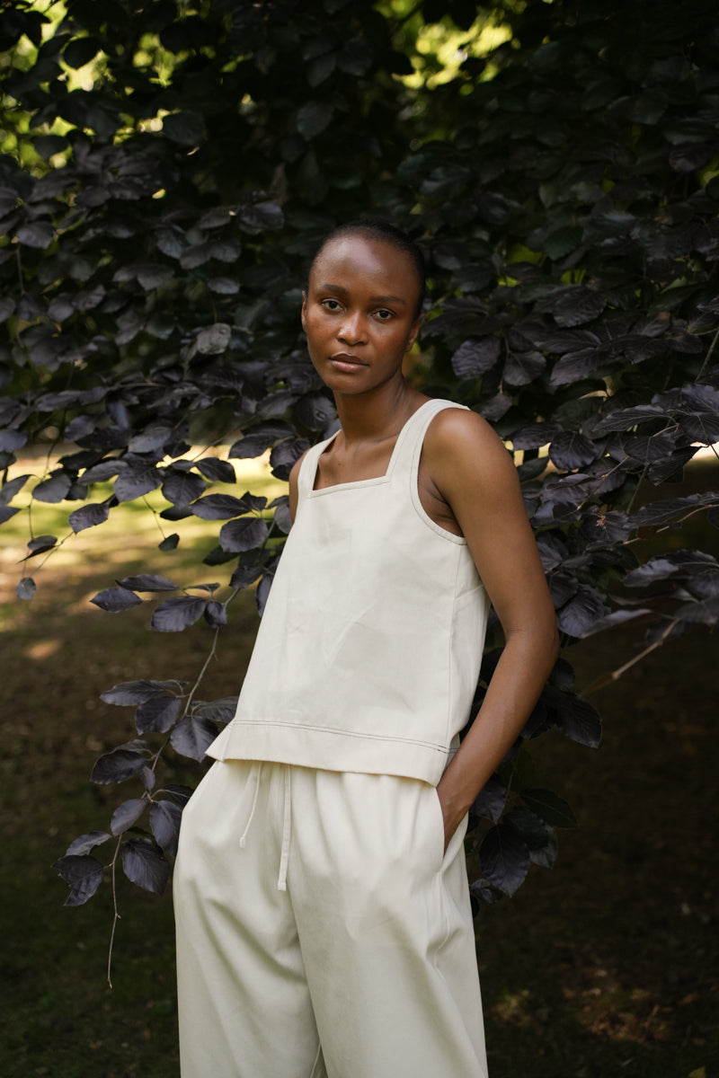 The Jess-Leigh vest top is crafted from 100% Organic Cotton denim, featuring a square neckline, wide straps and contrast stitching.