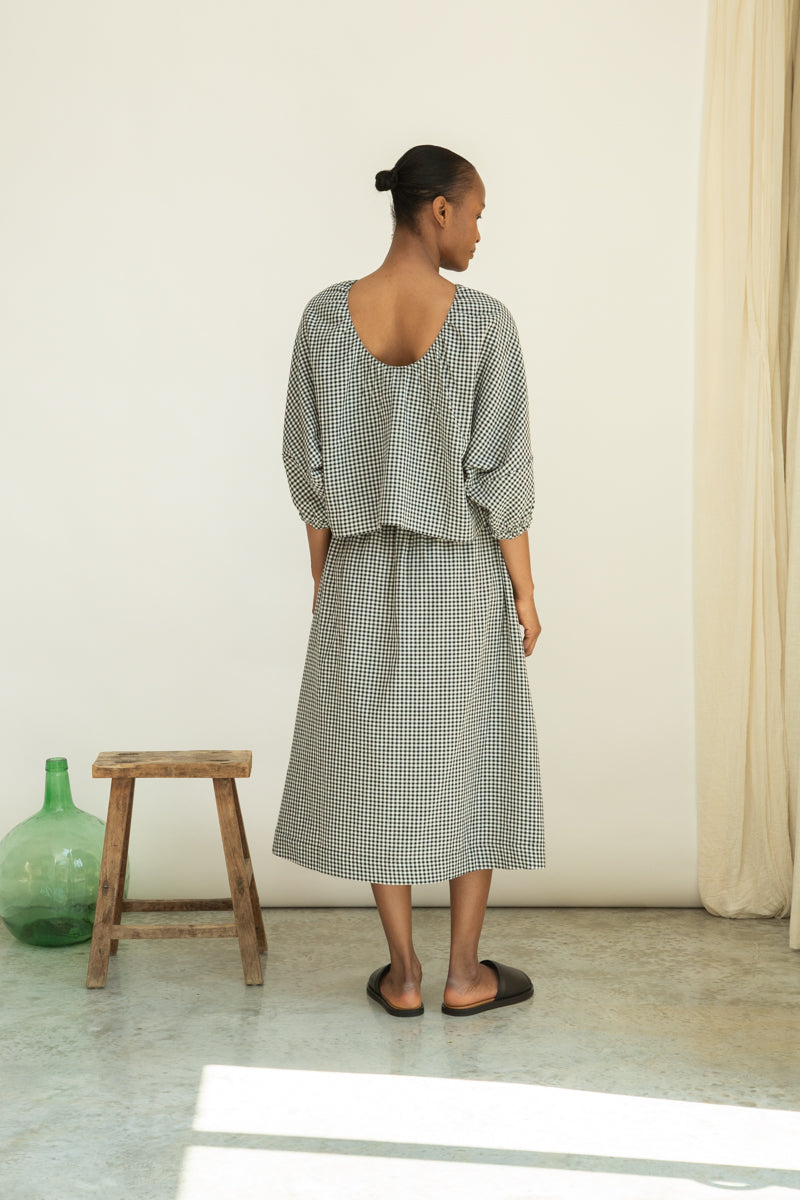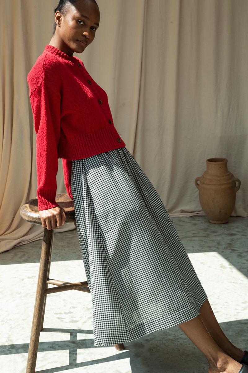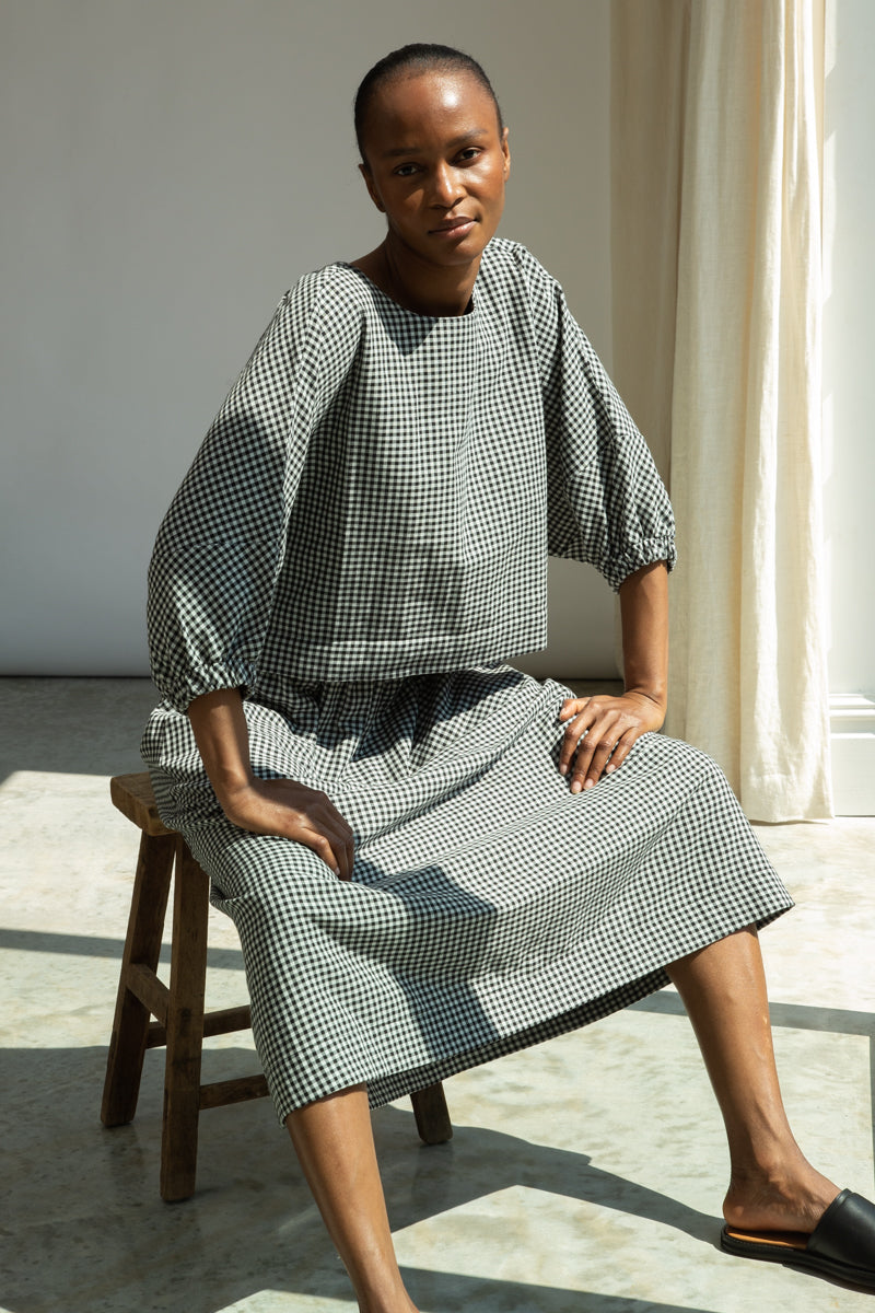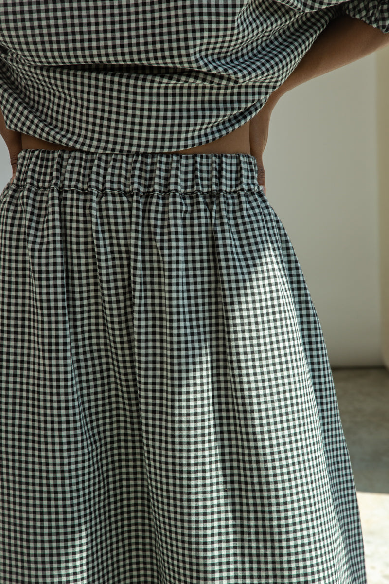 Goldie-Cay Organic Cotton Double Gauze Skirt in Monochrome Gingham