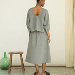 The Goldie skirt is an A-line maxi length style with an elasticated waistband and side pockets. Crafted from double gauze Organic Cotton for a comfortable and soft finish.