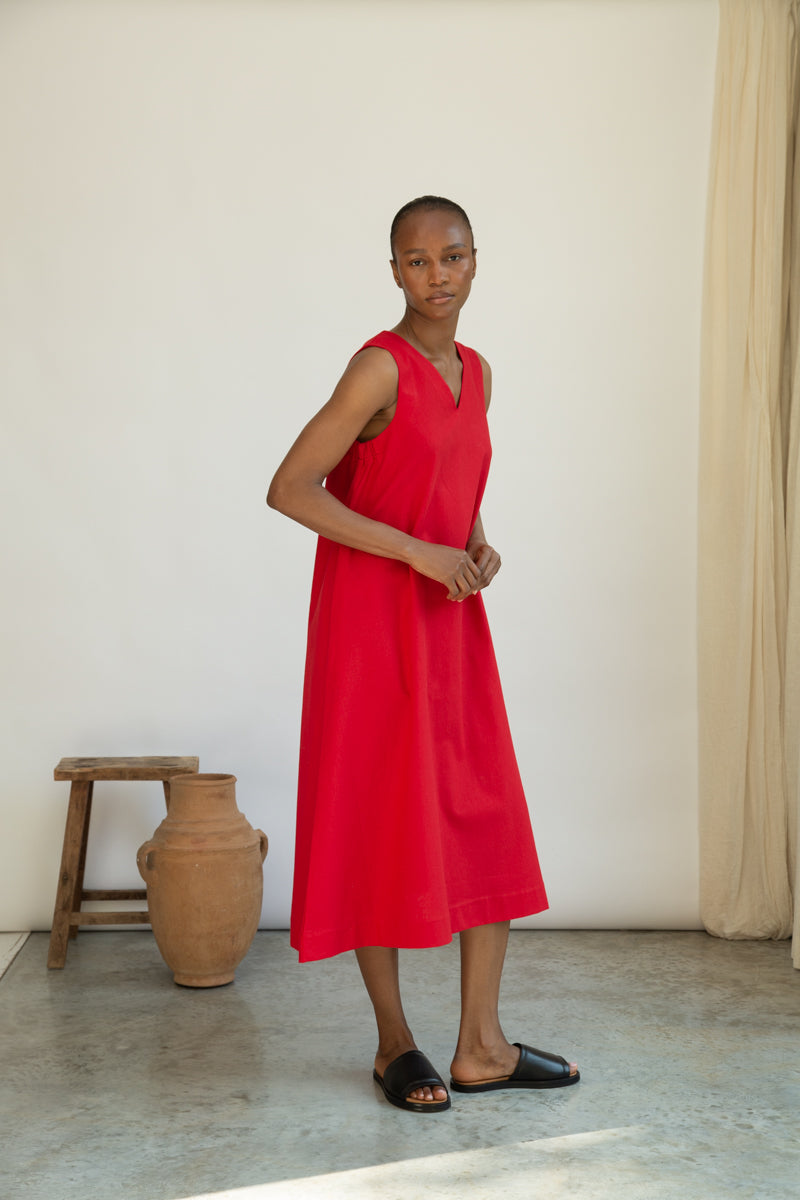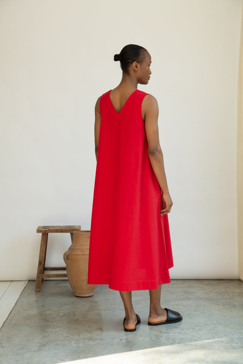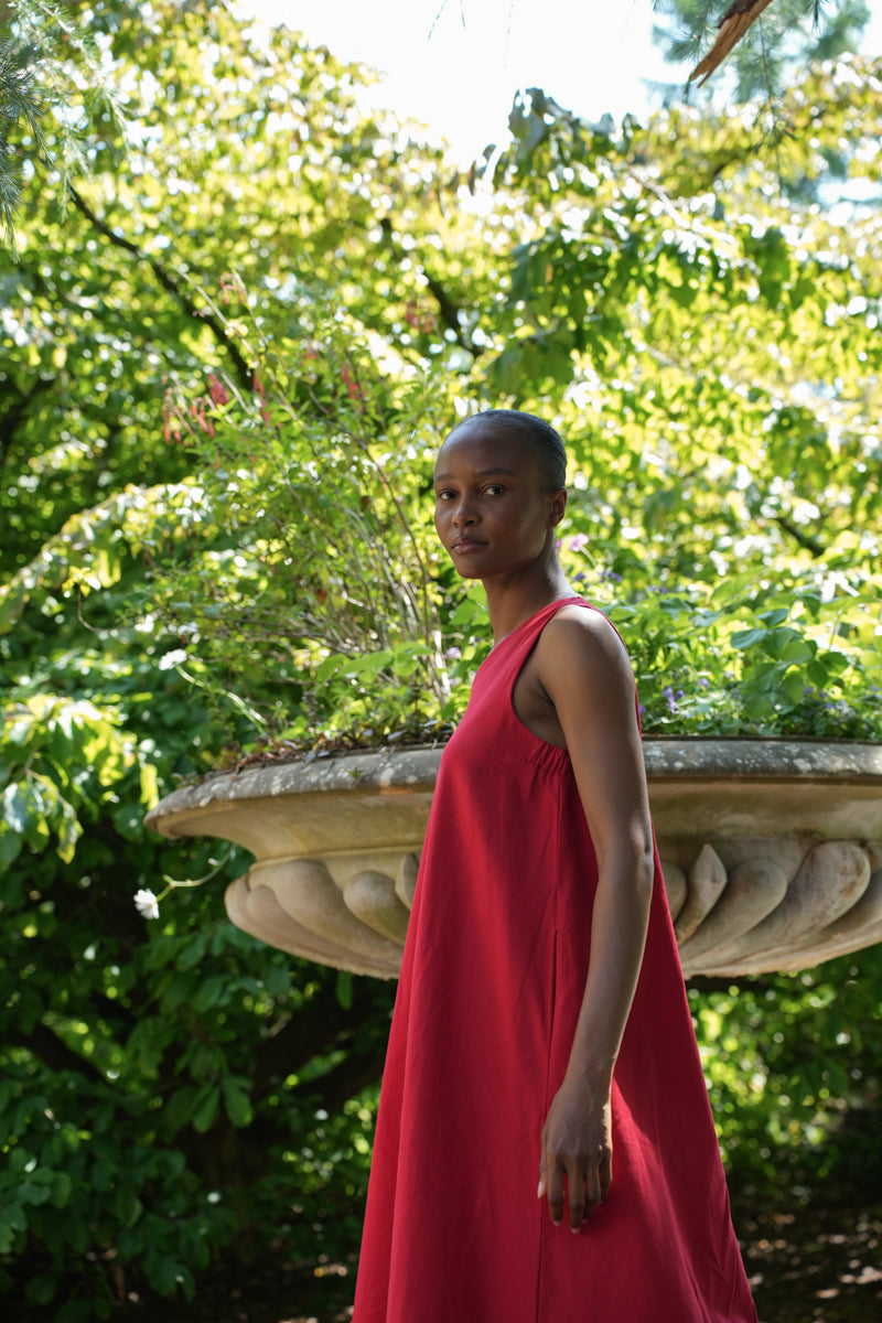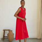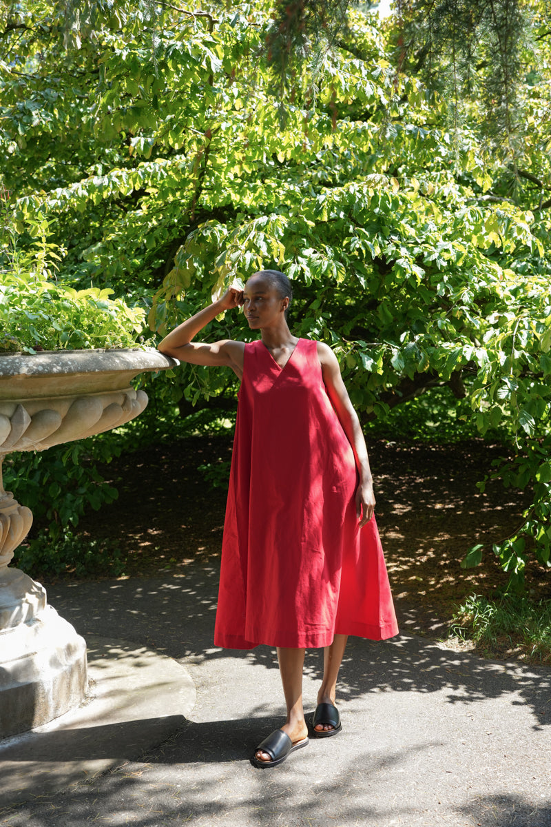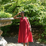 The Imogen-May is a midi day dress for all occasions. Crafted from our Organic Cotton Linen, it is cool for the warmer months. Featuring a flattering V-neck and back, side pockets and elasticated arm holes for ease and comfort.