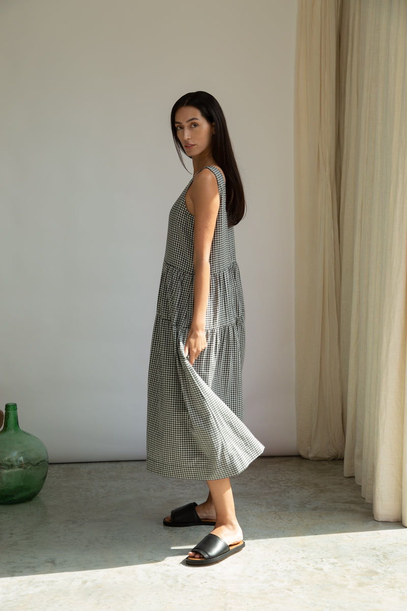 Kyra-Cay Organic Cotton Double Gauze Dress in Monochrome Gingham