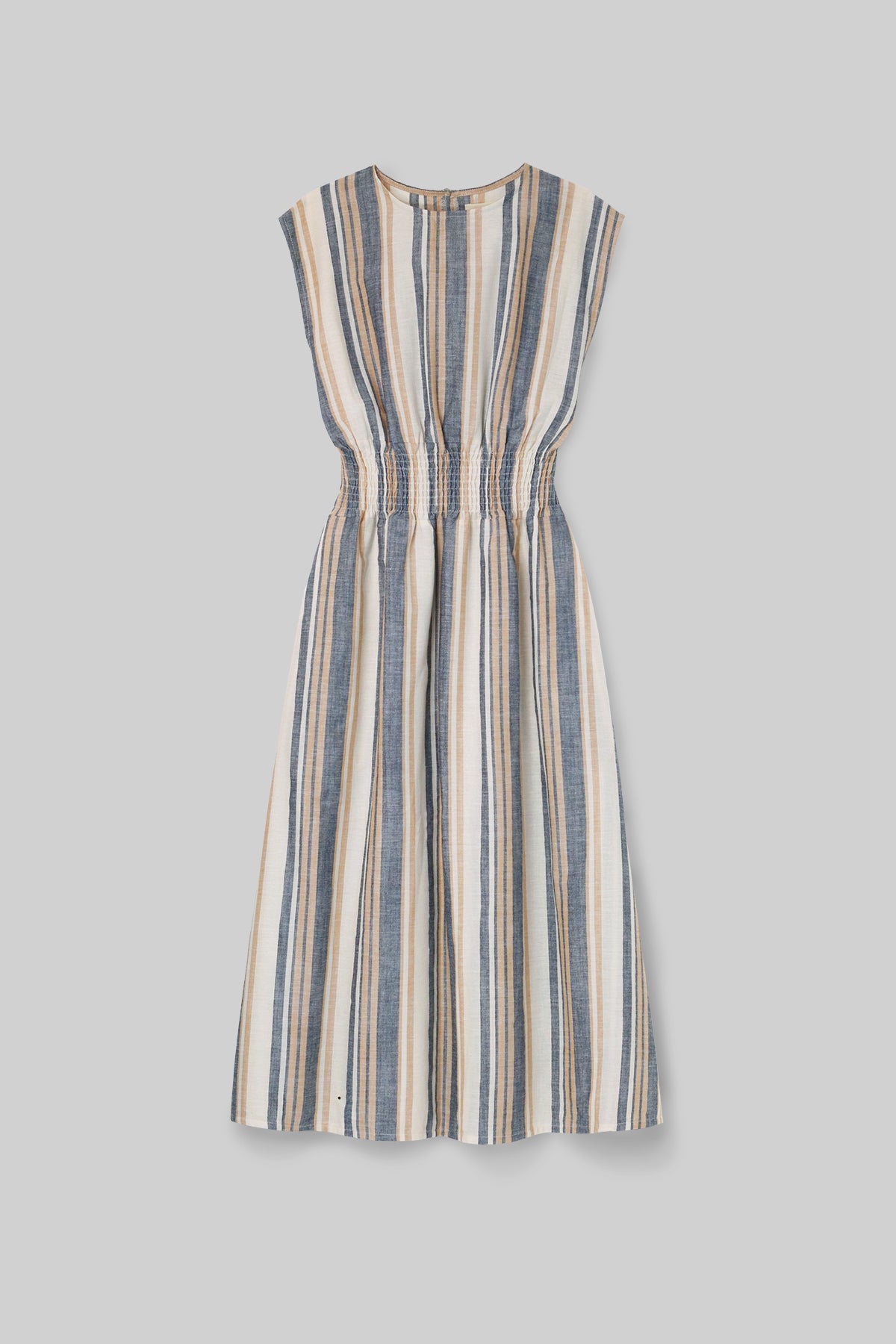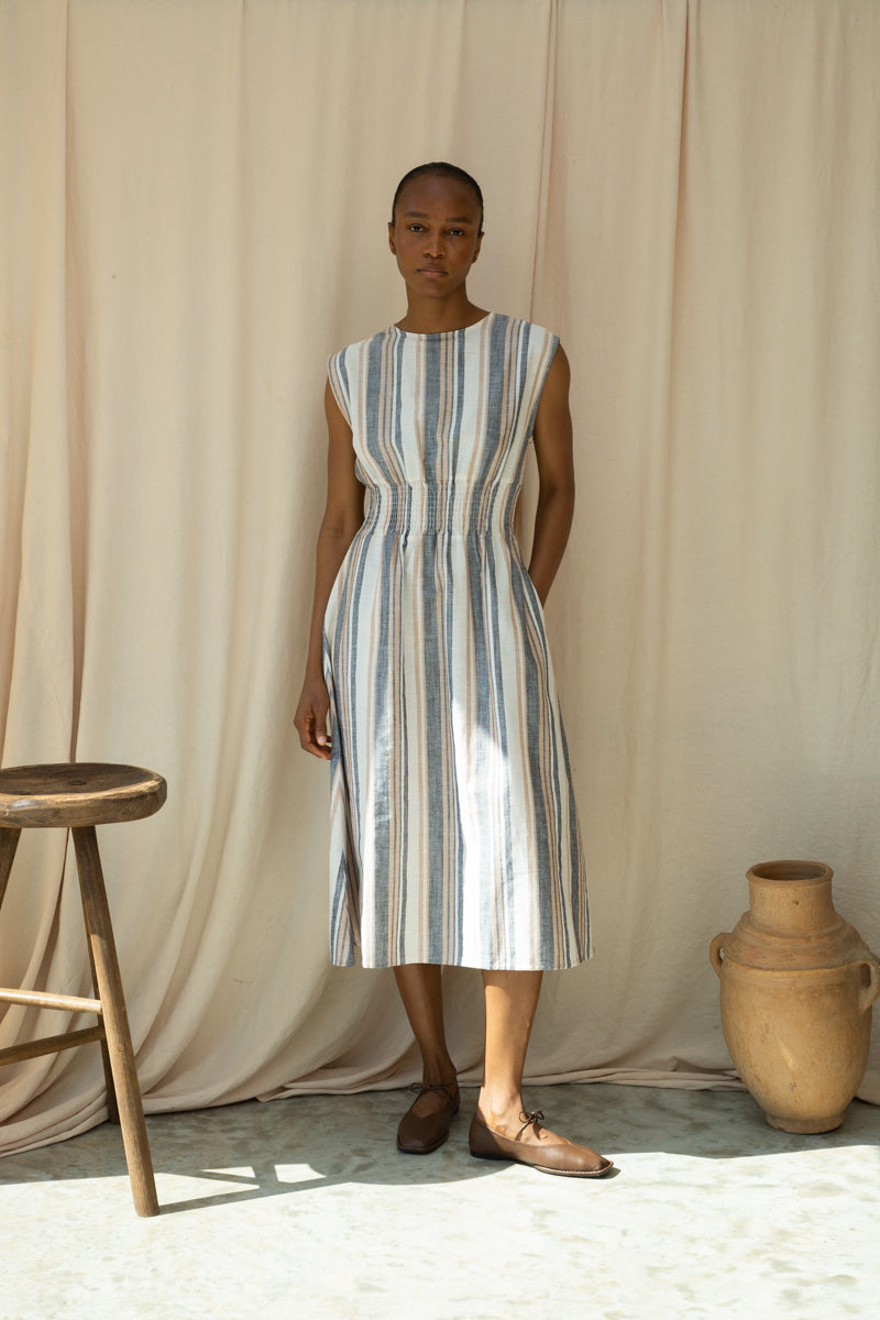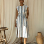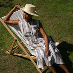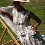 Ottillie-Sue Organic Cotton Woven Dress in Beige Multi Stripe